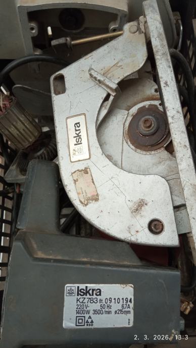 Sve na slici su dva Iskra ručna cirkulara, veliki i srednji, u dijelovima, nedostaju rotori