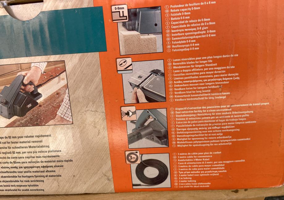 Prodajem ručnu električnu blanju Black&Decker KW 710, snage 330 W. Podešavanje dubine 0-0.5 mm. Širina reza 82 mm. Reverzibilne oštrice za dulji rad. Priključni kabel duljine 3m.