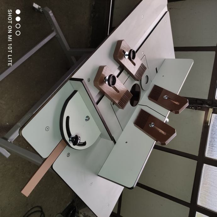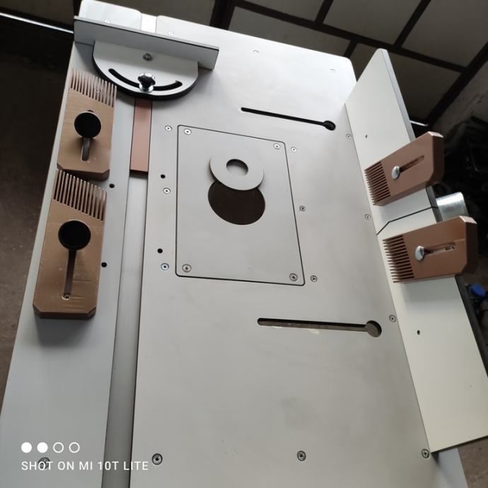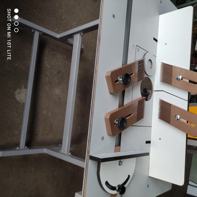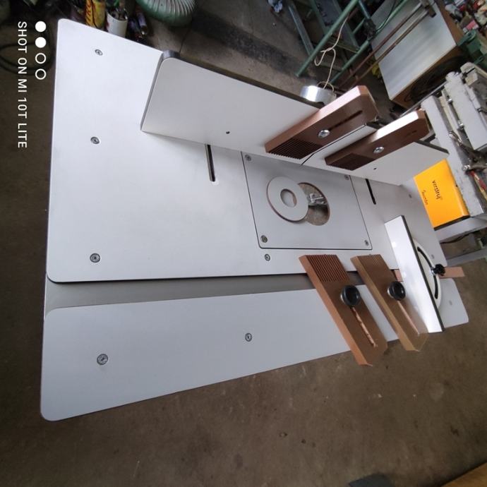 Prodajem novi stol za ručnu glodalicu. Na stol se može namontirati bilo koja ručna glodalica, čime se ručna glodalica pretvara u fiksnu, vertikalnu. Regulacija visine glodala se vrši ispod ploče na samoj glodalici.Radne površine su napravljene od kompakt ploče izuzetne otpornosti na habanje. Stol ima četiri okretna kotača sa kočnicom tako da se vrlo lako može prmještati. Firung se vrlo lako montira, a ploče na firungu su pomične radi regulacije otvora za glodalo . Na stolu se nalazi priključni kabel sa prekidačem na kojemu se uključuje u isključuje glodalica. PO POTREBI ŠALJEM VIDEO NA KOJEMU SE VIDI KAKO FUNKCIONIRA..