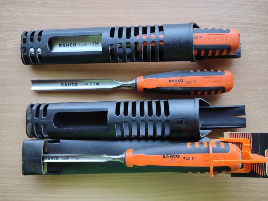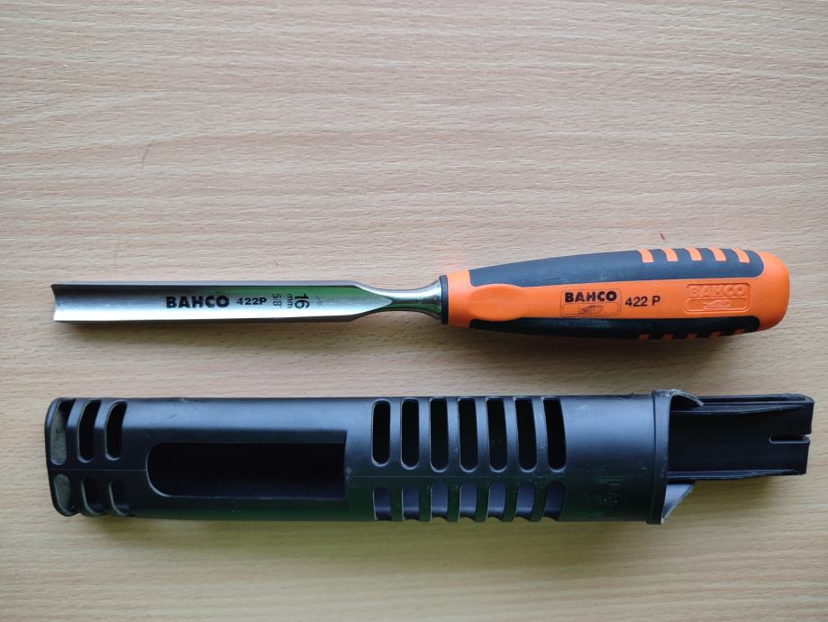 Stolarsko dlijeto Bahco 422 16mm, ovalno sa protukliznom ručkom i plastičnom futrolom za remen.