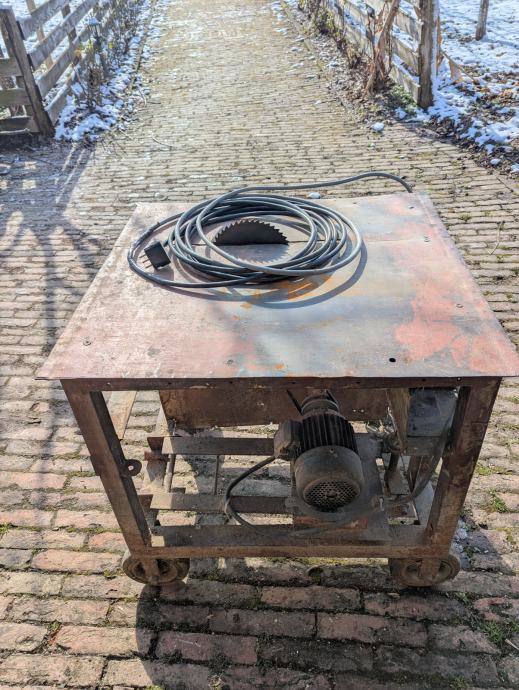 Prodajem stolni cirkular s kotačima, vrlo masivan i kvalitetan, dimenzija 82 cm duljina, 90 cm širina, 88 cm visina s trofaznim elektromotorom Končar 4AZ 2 konjske snage. Prekidač i kabel duljine 10 m.