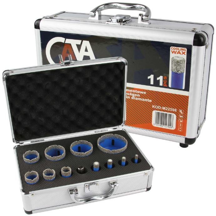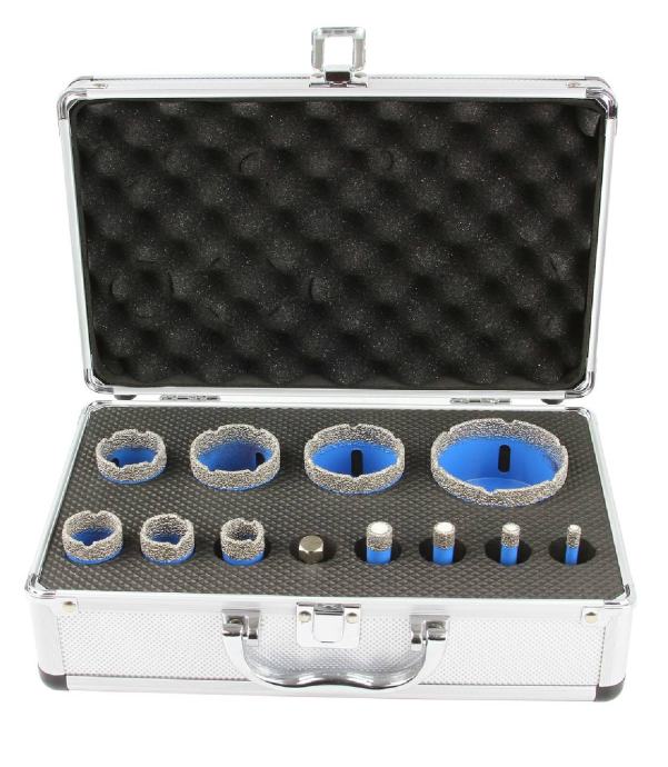 Set dijamantnih pila za provrte veličine od 6 do 68 mm.