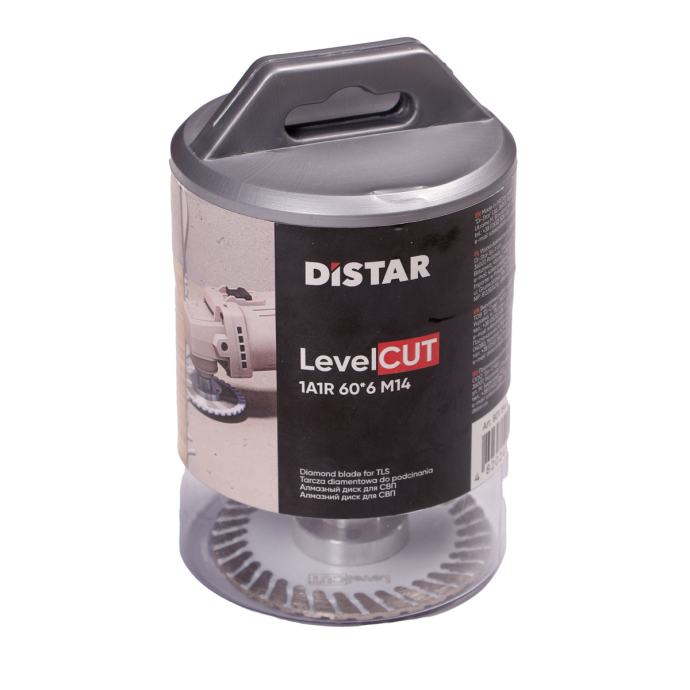 Distar LevelCUT Za podrezivanje ljepila Često je za postavljanje sustava za izravnavanje pločica potrebno podrezati staro ljepilo za pločice između pločica i estriha. Najprikladnije je ovaj zadatak obaviti s dijamantnom oštricom montiranom na kutnu brusilicu. Dijamantna rezna ploča LevelCUT najprikladnija je za takve radove. Zbog malog promjera od 60 mm i aluminijske prirubnice, vrlo je udobno izvesti podrezivanje čak i na teško dostupnim mjestima. Oštrica LevelCUT je pouzdan pomoćnik koji bi trebao biti pri ruci svakom majstoru. Nož se montira na kutnu brusilicu 115, 125 mm. Vanjski promjer je 60 mm, a prihvat je M14. Korištenje je bez hlađenja.