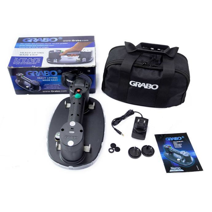 https://www.youtube.com/watch?v=n8dz5RnDAn8 To je potpuno prenosiv, lagan odgovor na klasične ručne gumene vakuumske držače. GRABO Plus komplet Kada kupite verziju GRABO Plus, kupujete bezbrižnost. Stoga svaki GRABO alat dolazi kao cjelovita jedinica, s unaprijed instaliranom baterijom i vakuumskom brtvom te punjačem s više utičnica uključenim u komplet. Obraćamo pažnju na svaki detalj, stoga smo, kako bismo vam olakšali život, uz svaki Grabo uključili i čvrstu torbu za nošenje, tako da sve komponente i dodatke možete držati na jednom mjestu. Dodatne baterije i zamjenske brtve također se mogu kupiti zasebno. Sadržaj paketa: 1 GRABO Plus alat