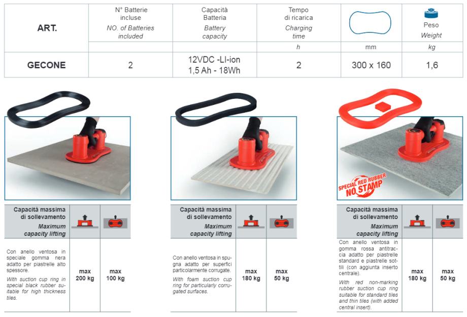 GECONE je profesionalni aku vakuum dizajniran da osigura maksimalnu učinkovitost u svim radnim uvjetima. Posebno dizajniran za keramiku, GECONE je idealan za rukovanje pločicama svih vrsta i debljina