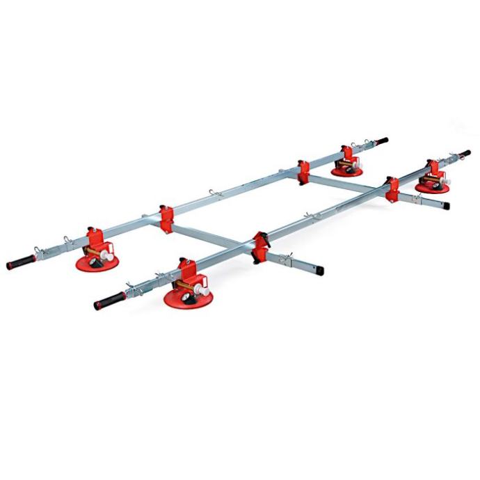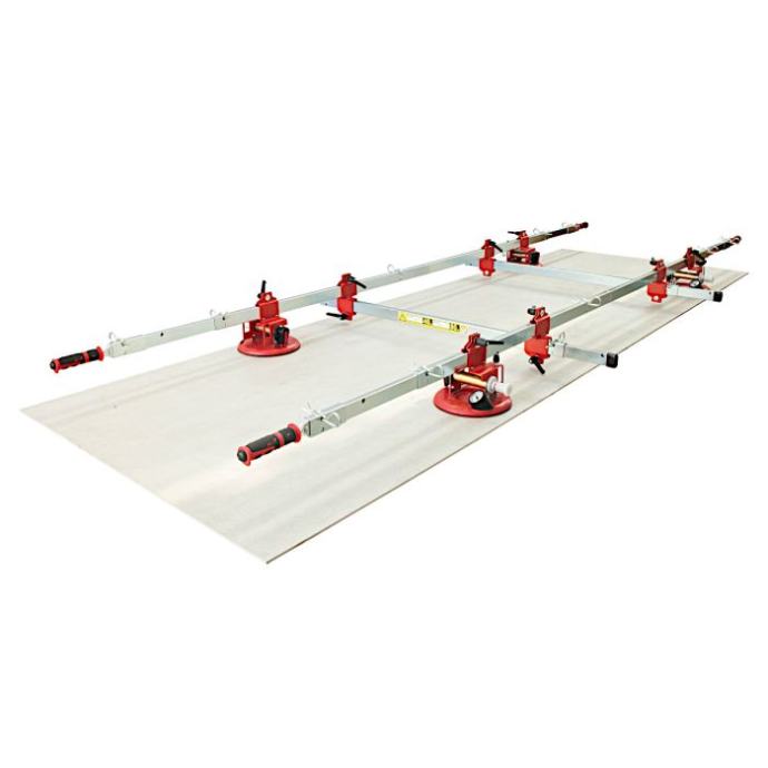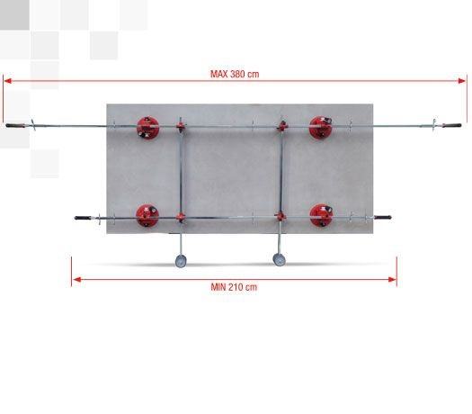 Montolit Superlift je višenamjenski okvir za rukovanje pločicama posljednje generacije koje sada postaju sve veće i teže. (npr. format 300x150cm) Projektiran je s pocinčanim teleskopskim željeznim cijevima (jedinstveno na tržištu) koje su otporne na habanje i koroziju. SUPERLIFT može održati krutost i pod pritiskom elastičnih i tanjih ploča izbjegavajući opasno savijanje koje može slomiti ploču ili oštetiti keramičku pločicu. Superlift se lako rastavlja kako bi bio lakši i kompaktniji tijekom transporta, potpuno je modularan kako bi se stvorilo nekoliko konfiguracija ovisno o vrsti i obliku ploče. Štoviše, uz standardne konfiguracije s 4 usisna vakuma, dostupni su u katalogu dodatni vakumi koje se mogu dodati posvuda na okviru, za rad na težim pločicama ili lomljivim materijalima. Usisni vakumi , glavni dio ovog sustava, imaju važne dimenzije (200 mm) i opremljene su dvostrukom provjerom upozorenja putem analognog manometra tlaka i indikatora crvene linije izravno na sustavu pumpe. Projektirani s tehničkom gumom na bazi silicija koja ne ostavlja boju na ploči, lako se pomiču u svakom položaju duž okvira, ovisno o potrebama polagača. Sustav za zaključavanje koji drži vakume za okvir je učinkovit i intuitivan, što čini postupak pomicanja i podešavanja vakuma stvarno brzim, točnim i sigurnim. Ručke na krajevima šipki izrađene su od ergonomske i protuklizne gume, također su opremljene plastičnim nosačima na stražnjoj strani kako bi držale cijelu strukturu i lako okomito položile ploču na zid izbjegavajući grebanje poda . Sustav teleskopskih ručki omogućuje keramičaru rukovanje porculanskim pločicama do 380 cm duljine. Nosač sustava na kotačima je inovacija u ovom području, zahvaljujući njemu operater može transportirati ploče na kotačima bez ikakvog zamora, a također je i lijepljenje pojednostavljeno. SUPERLIFT + PODRŠKA SUSTAVA NA KOTAČIĆIMA čine ovaj alat ultimativnim priborom za rukovanje i podizanje pločica velikog formata. Pogledajte video o načinu rukovanja s Montolit Superliftom https://www.youtube.com/watch?v=0OnJEWOqxho