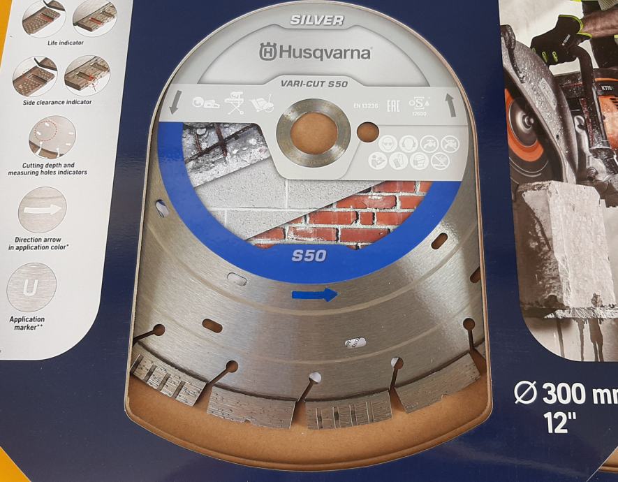 Rezna ploča (VARI CUT S 50) je razvijena za profesionalnu upotrebu u raznim primjenama i nudi veliku brzinu rezanja i otpornost na habanje u svim operacijama rezanja i piljenja armiranog betona, kamena, cigle i ostalih tvrdih materijala.