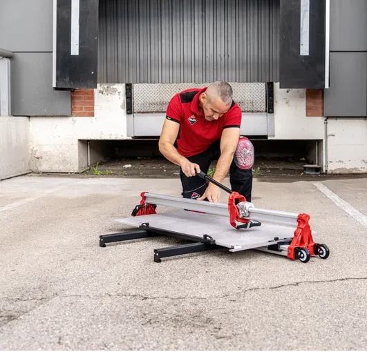 Težina s torbom: 21,2 kg RCH je robustan i precizan rezač keramike za najzahtjevnije poslove u keramičkim pločicama velikog formata. To je stroj koji je posebno dizajniran te izrađen u potpunosti izrađen od aluminija. Zahvaljujući vodilici u obliku slova T, vidljivost reznog noža neće biti problem. Za mehanizam za lomljenje RCH asortimana imamo MAGNET sustav.čime se povećava brzina korištenja i preciznost rezanja. S velikom snagom odvajanja od 950 kg, omogućit će nam rezanje bilo koje vrste keramičkih pločica uz potpuno jamstvo. Asortiman RCH uključuje fiksni kvadrat s aluminijskim bočnim graničnikom za ponavljanje rezova i uskih traka, zajedno s fiksnim kvadratom izrađenim od ojačane plastike za rezove pod kutovima od 90° i 45°. Ručni rezači RCH posebno su dizajnirani za rad s pločicama velikog formata. Za bolju prenosivost, asortiman RCH (osim modela od 850 mm) uključuje kotače i ručku za nošenje, kao i ojačanu torbu za nošenje za veću zaštitu i izdržljivost rezača. Svi modeli RCH uključuju Extreme rezni nožić od 22 mm.