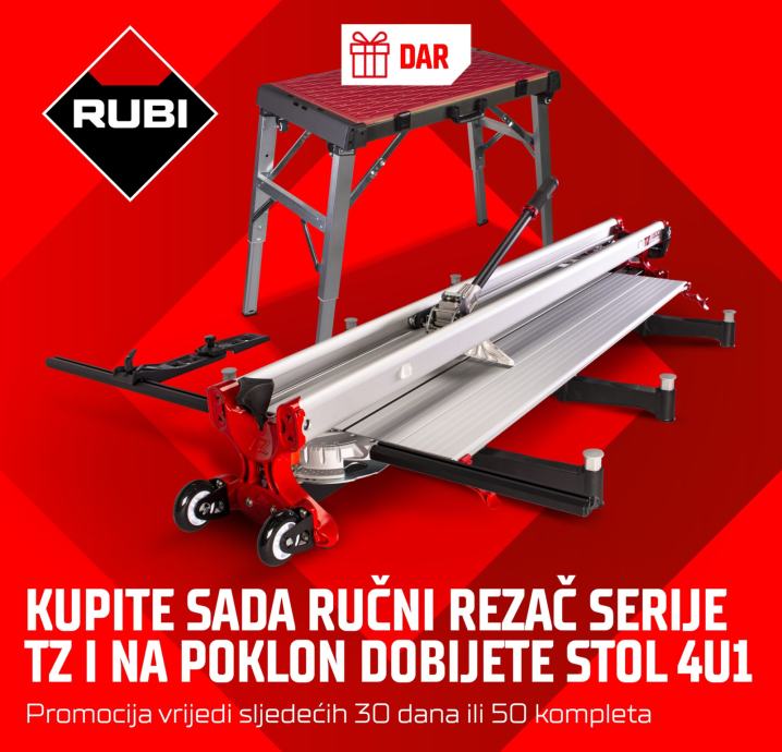 MAKSIMALNA SNAGA, NAJNAPREDNIJI RUČNI REZAČ NA TRŽIŠTU. RUBI je uvijek bio sinonim za kvalitetu i inovativnost u cijelom svijetu. TZ ručni rezači novi su koncept u ručnom rezanju pločica s kapacitetom odvajanja dosad neviđenim na tržištu. Snažan potisni sustav (do 1.500 kg) kojim se upravlja samo jednom rukom. Precizan s mekim pokretima klizača. Veliki kapacitet rezanja, do 21 mm debljine. Idealno za pločice velikog formata*. Robustan s sklopivom strukturom za veliku čvrstoću i jednostavan transport. REZNI MATERIJALI - Za intenzivno rezanje svih vrsta keramičkih pločica, idealno za porculanske i ekstrudirane kamene ploče. TZ ručne rezačice su novi koncept u ručnom rezanju keramike, s dosad neviđenim kapacitetom odlamanja na tržištu i s inovativnim konstruktivnim rješenjima. Zahvaljujući patentiranom dizajnu sustava za vođenje glave, TZ ručni rezač pruža glatko i precizno zarezivanje, čak iako je pritisak opterećenja povećan pri lomu. Geometrija vodilica, izrađena od ekstrudiranog aluminija, osigurava optimalnu izvedbu automobila i smanjuje sile koje se mogu stvoriti tijekom rezanja. TZ ručni rezači posebno su dizajnirani za rad s pločicama velikog formata. Dostupan u 4 različita modela, TZ je kompatibilan s formatima do 61" (ravni rez) ili 43"x43" dijagonalno. Zakretni kvadrat s krajevima koji se mogu ukloniti i sustav zaključavanja osiguravaju precizne rezove i olakšavaju izvođenje kutnih rezova. Patentirani dugi bočni graničnik nudi veliku površinu za izvođenje ponavljajućih rezova u velikim komadima. Ručni rezači TZ opremljeni su kotačima i ručkama za nošenje kako bi se olakšalo njihovo prenošenje na radnom mjestu i visoko ojačanom tekstilnom torbom za transport i zaštitu. https://www.youtube.com/watch?v=e7aQ-qalwog Šifra artikla – 17953 Dužina reza – 130 cm Rezanje dijagonale – 90×90 cm Max. visina reza – 3-21 mm Snaga loma – 1500 kg Težina rezača: 30kg Prenosiva torba uključena