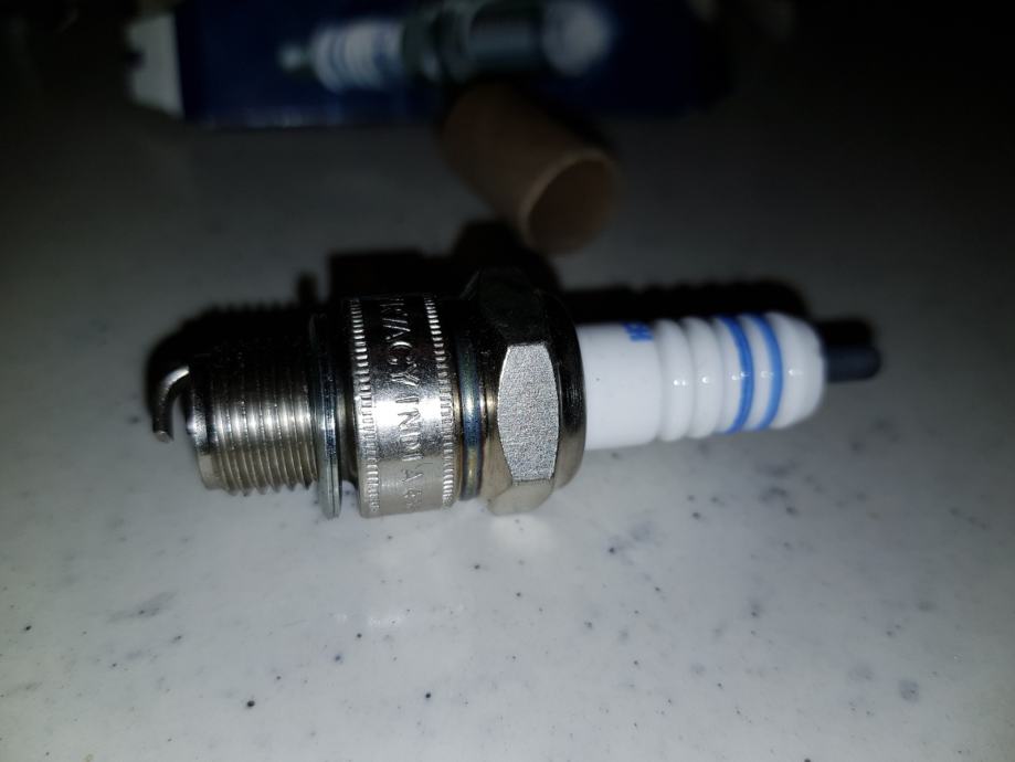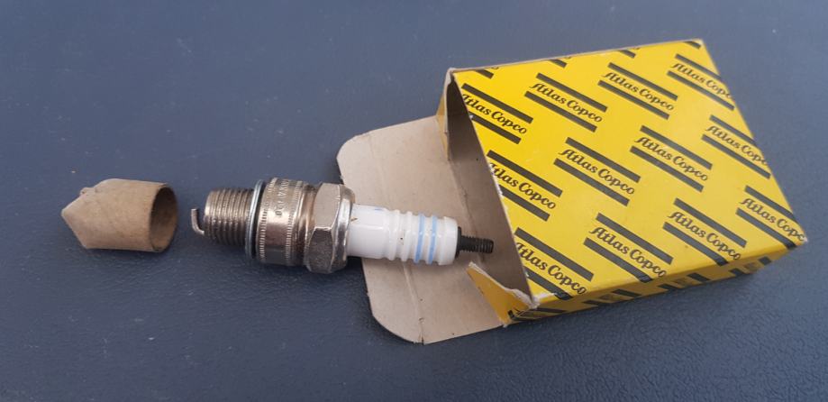 Tvornički i originalna svjećica sa također bakrenim elektrodama, što je prije dolazila s ovakvim strojevima za paljenje, imala je svoj puni naziv Motor-craft AE-6. Sada ju zamjenjuje ova svjećica BOSCH R6 WR 7ACY sa dva plava kruga na keramici pri vrhu.