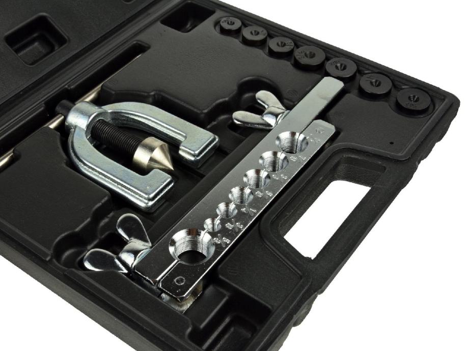 Komplet za zaradu kočnica i dovoda goriva. Pogodan je za rezanje i proširenje bakrenih, mjedenih i aluminijskih cijevi i kabela sa stijenkama do 1 mm debljine.