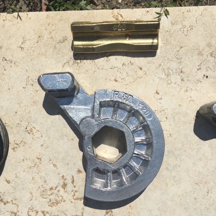 Aluminijski alat Ø20 R56, za savijačice cijevi Ercolina, sa mesinganom kontramatricom, stanje NOVO, dostupno odmah.
