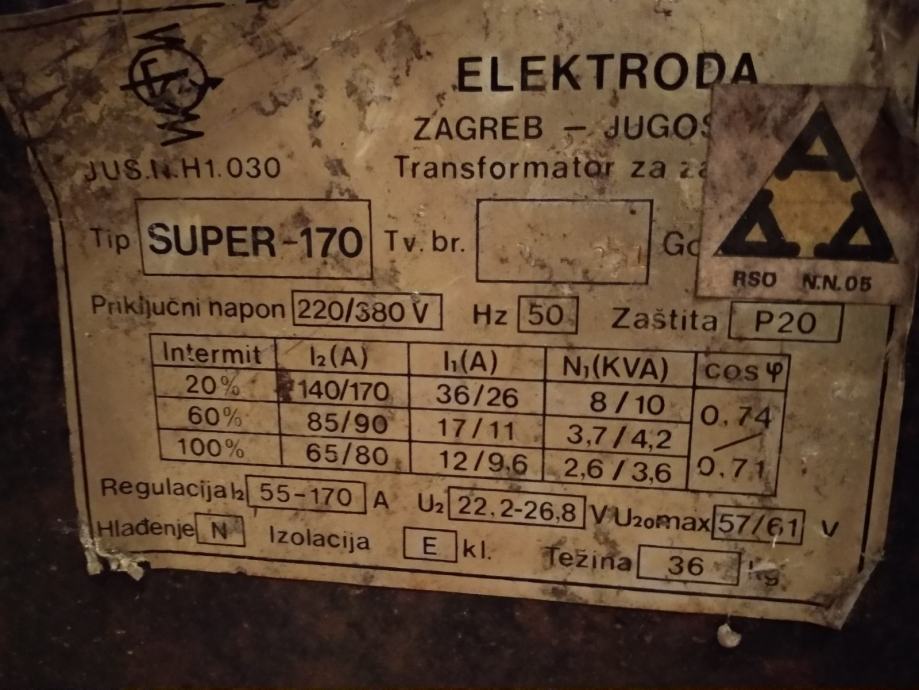 Prodajem pouzdan Elektroda transformator za zavarivanje SUPER-170 (regulacija 55–170 A, 220/380 V, težina 36 kg). Uređaj je u potpunosti ispravan, robustan i spreman za rad. Idealan za kućne majstore, radionice ili manje obrte!