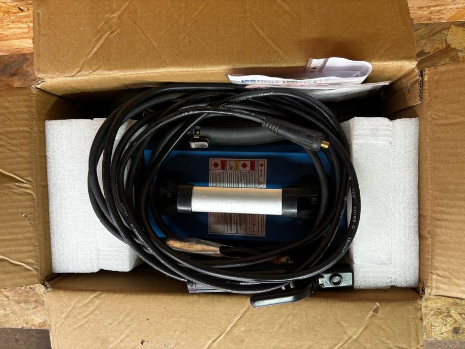 Uz aparat dolaze kablovi s držačem elektrode i masom te na poklon dajem jedan kolut zice za zavarivanje na plin te jedan kolut zice punjene prahom. U aparatu ima jos pola koluta zice za zavarivanje na plin.