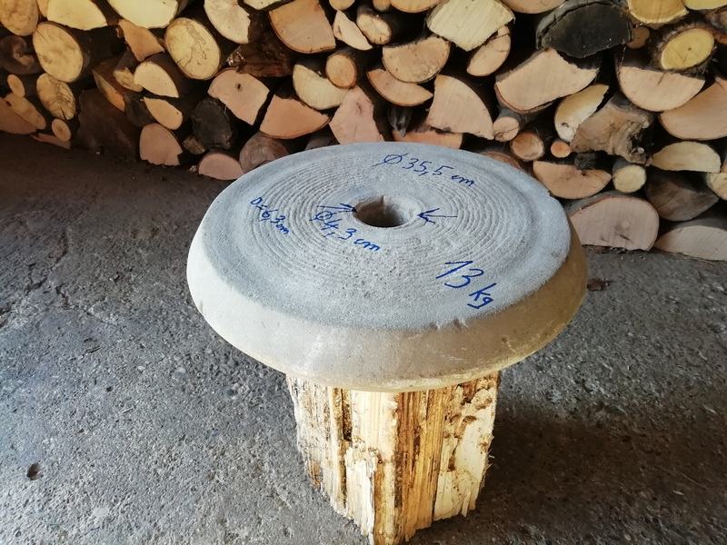 Prodajem brusni kamen promjera 35,5 cm,unutarnja rupa je 4,3 cm promjera,debljina kamena je 6,3 cm.Masa kamena je 13 kg.