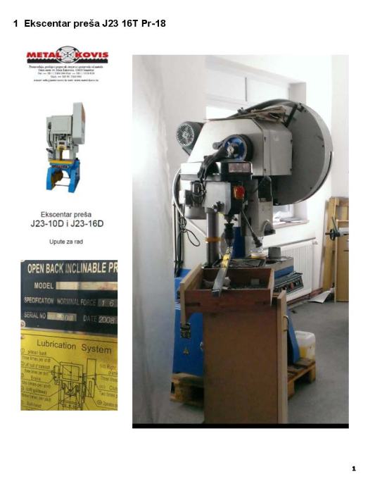 Ekscentar preša, Bušilica stupna, Tračna pila, Savijačica 3u1 i ostalo