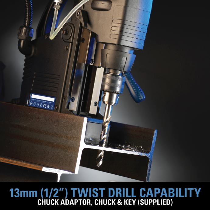Impresivni EVOMAG42 nudi nevjerojatnu vrijednost s mogućnošću korištenja do 1-5/8 inča (42 mm) rezača i 1/2 inča (13 mm) spiralnih svrdla. EVOMAG42 također ima integrirani sustav rashladne tekućine za magnetsko bušenje.
