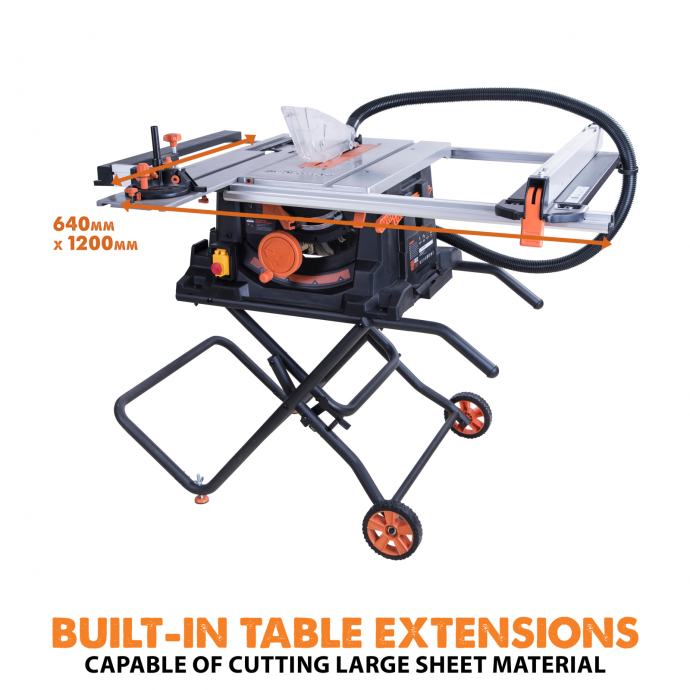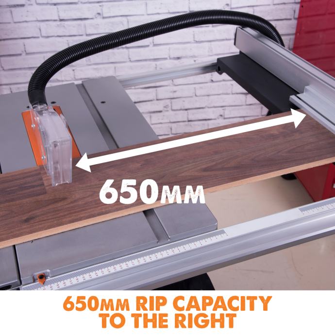 Specifikacija RAGE5-S uključuje snažan motor od 1500 W s motorom visokog zakretnog momenta koji olakšava rad bilo kojeg rezanja. Sposobnost rezanja pod uglom do 45° i 60° može se fino podesiti i lako podesiti. Dubina oštrice može se podesiti u rasponu visine od 80 mm. Podesiva ograda po cijeloj dužini, kutna vodilica, podesivi potiskivač materijala i proširiva platforma na lijevoj i desnoj strani gornje ploče čine ovu stolnu pilu uistinu svestranom. RAGE5-S ima snagu za velike poslove i finoću za rješavanje malih. Ako ćete se specijalizirati za jednu specifičnu vrstu rezanja materijala, zašto ne upotrijebite naš asortiman reznih oštrica specifičnih za materijale, drvo, fino drvo, meki čelik, aluminij, nehrđajući i dijamantni premaz.
