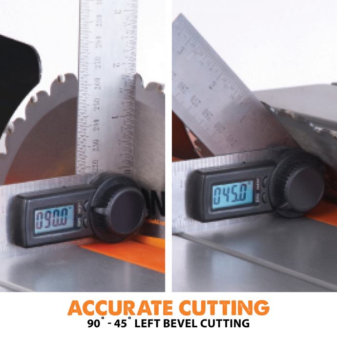 Kosi nagib od 0-45 stupnjeva i ograda od 60-60 stupnjeva pokriva sve uobičajene, složene kutove rezanja.