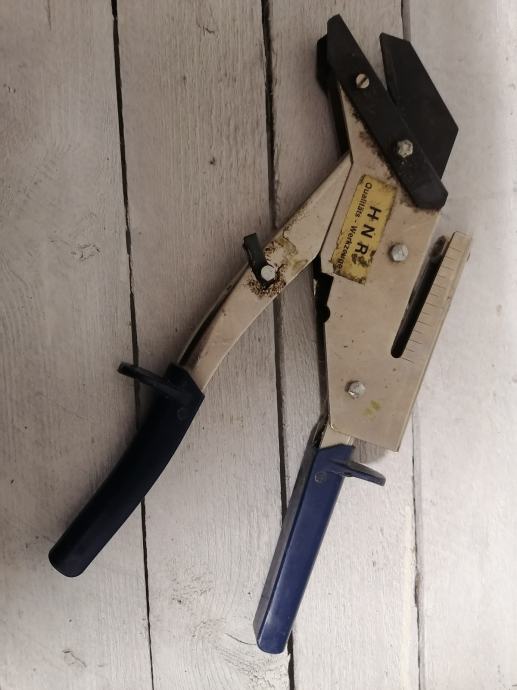 Ovaj alat je škare za škriljevac (ponekad se nazivaju i fasadne škare) marke EDMA ili TRIUSO.