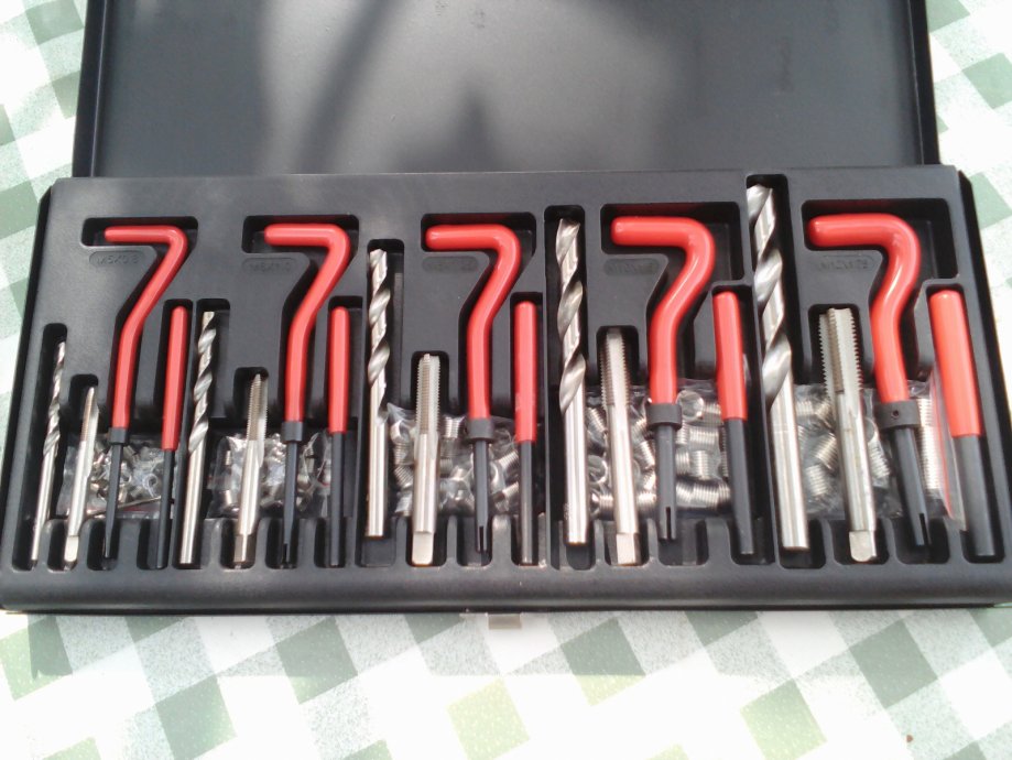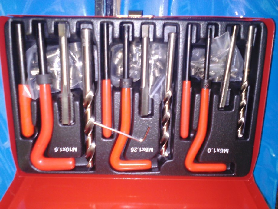 Alat je univerzalan i može se koristiti za razne primjene popravaka navoja , narezivanje navoja u aluminiju i željezu . Popravak blokova motora Kučišta mjenjača alternator i slično.