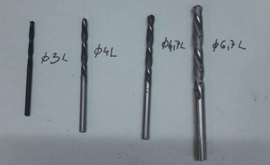 Lot lijevih svrdla (nisu kineska), fi3, fi4, fi 4,7 i fi 6,7, nekorištena, 100 kn sva četiri.