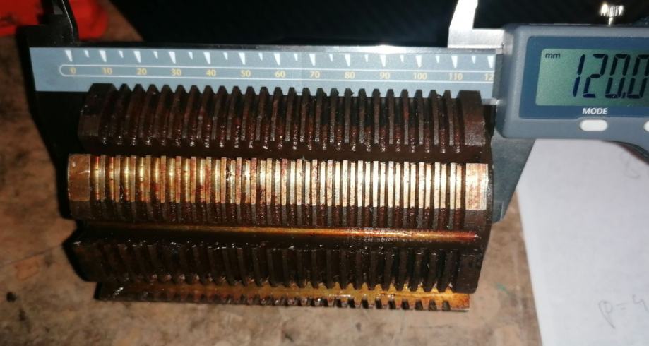 Izmjereno: Dubina zuba 2.77, osovina promjer 31.6, vanjski promjer 78, dužina 120 mm