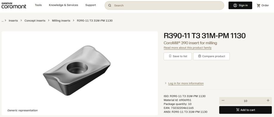 Pločice za glodanje SANDVIK R390-11 T3 31M-PM 1130 za čelik i inox.