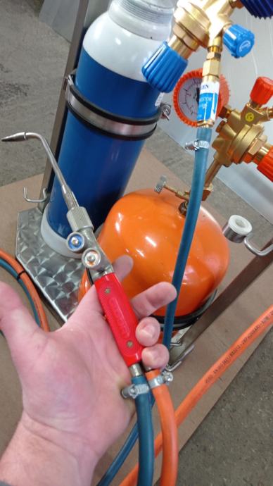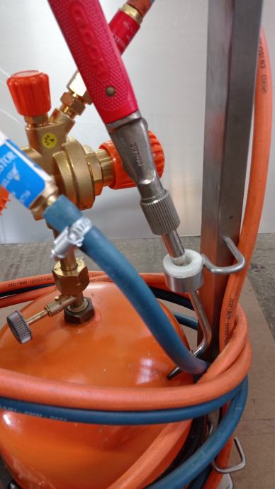 novi manometri kisik + propan , nepovratni ventili, Gloor (Švicarska) lagani gorionik sa finom diznom.