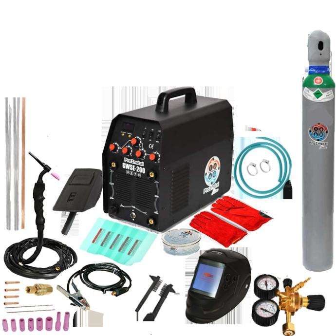 1.TIG zavarivanje do 200A – zavarivanje u zaštiti inertnog plina, poput Argona .Električni luk nastaje u plinskom mlazu argona između volframove elektrode i metala. Grijanje električnog luka topi materijal i zatim se po potrebi rukom dodaje dodatni materijal. Prilikom taljenja materijala mlaz argona štiti var od doticaja sa okolnim zrakom i na taj način štiti materijal od pregaranja. Ova vrsta zavarivanja koristi se kod svih materijala čelika, nehrđajućeg čelika, bakra aluminija i mnogih drugih.