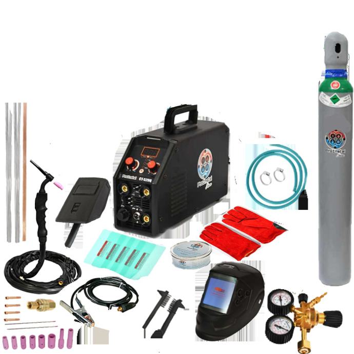 1.TIG zavarivanje do 200A – zavarivanje u zaštiti inertnog plina, poput Argona .Električni luk nastaje u plinskom mlazu argona između volframove elektrode i metala. Grijanje električnog luka topi materijal i zatim se po potrebi rukom dodaje dodatni materijal. Prilikom taljenja materijala mlaz argona štiti var od doticaja sa okolnim zrakom i na taj način štiti materijal od pregaranja. Ova vrsta zavarivanja koristi se kod svih materijala čelika, nehrđajućeg čelika, bakra i mnogih drugih.