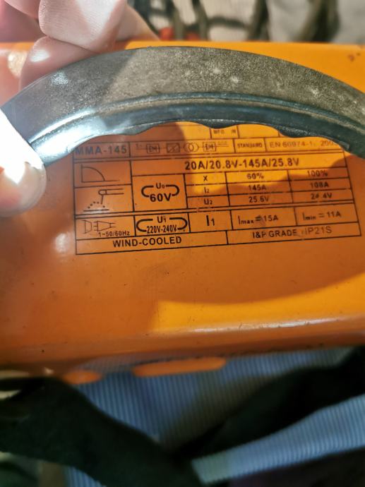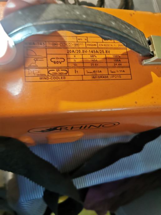 Rhino -aparat za zavarivanje za elektrolučno zavarivanje do 145 ampera vari s elektrodom do 3,25 mm