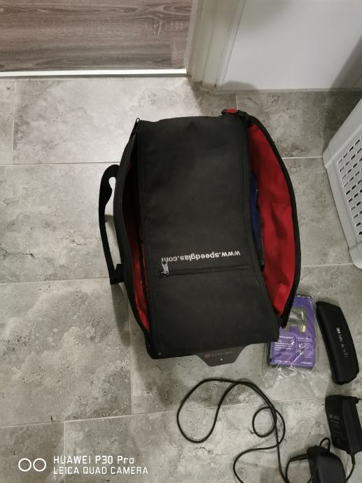 Uz masku: originalna torba, 2x baterije koje drze 6 do 8 sati svaka ovisno od upotrebe, punjac, zamjenski filter i predfilter, sistem, i jos par komada originalnih zastitnih stakala za nju.