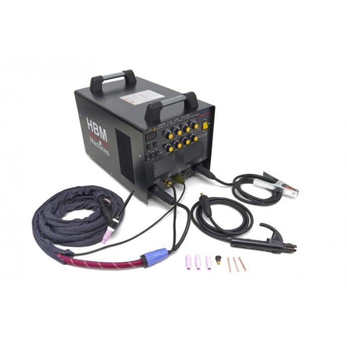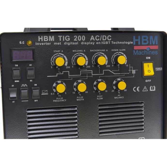 prikladan je za elektrode za zavarivanje promjera 1,6 - 4 mm.opremljen je osiguračem od 16 A.s ovim AC/DC zavarivačem možete zavarivati čelik, nehrđajući čelik, legirani čelik, ugljični čelik, bakar i aluminij do debljine od 1 cmsa stražnje strane se nalaze dva ventilatora, priključak za plin, kabel za napajanje i pločica s podacima o radnom ciklususvi prekidači i tipke za podešavanje pretvarača nalaze se na prednjoj stranina donjoj prednjoj strani nalaze se priključci za plamenik i po potrebi nožna papučicainverter dolazi u kompletu sa stezaljkom za uzemljenje, kliještima za elektrode i plamenikom za TIG zavarivanje s potrošnim materijalomTehnički podaci: tehnički podacitežina 20kgdimenzije 498 x 328 x 302 mm (DxŠxV)napon 230 voltiradni ciklus na 200 A 60%radni ciklus na 155A 100%učinkovitost 85%brzina praznog hoda podesiva 10 200 Anazivni radni ciklus u amperima 60%promjer elektrode: 1,6 - 2,0 mmbajonet priključak: 13 mmAC radni ciklus 20 - 80%radni ciklus impulsa 10 - 90%pokretanje luka (COS) 0,93]]>