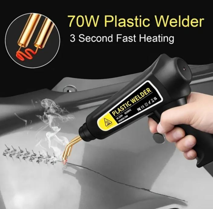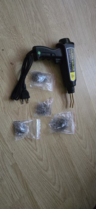 Prodajem komplet, pištolj za zavarivanje plastike s ugrađenom prednjom svijetiljkom i 400 komada raznih spajalica