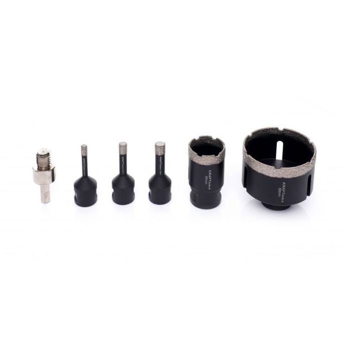 Dijamantna pila s jezgrom poljskog brenda Kraft & Dele, model KD11226, koristi se za bušenje bez udarca "mokro" u porculanskom kamenu, keramici, mramoru, porculanu i tvrdim pločicama.