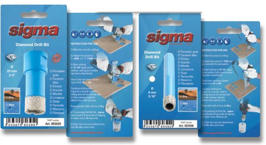 "Sigma" Profesionalne keramičarske dijamantne krune za suho ili mokro bušenje na porculanu, mramoru, granitu, gres keramici itd.