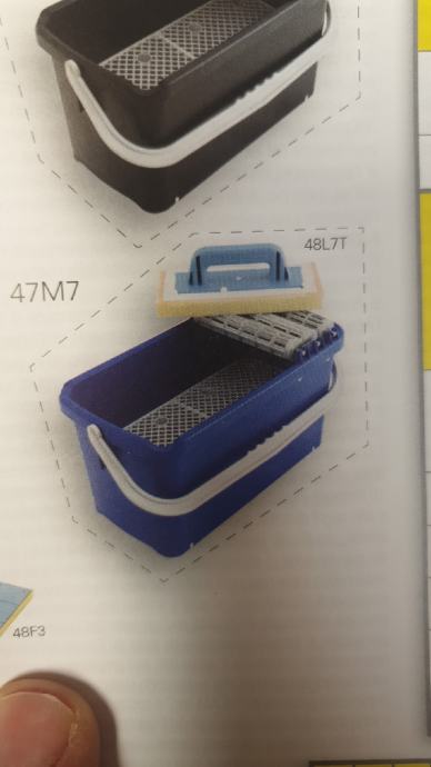 Sigma 47M7 keramičarska kadica / kanta je profesionalna posuda za pripremu i pranje alata pri radu s keramikom i fugiranju. Opremljena je tri čelična valjka za cijeđenje, visoko upijajućom spužvom sa drškom i plastičnom mrežicom za ispiranje koja olakšava čišćenje gletera, spužvi i drugih dodataka nakon polaganja pločica ili fugiranja. dizajnirana je za svakodnevnu upotrebu na gradilištu i u keramičarskim poslovima — stabilna je, izdržljiva i jednostavna za pomicanje, što je čini odličnim izborom za keramičare, montažere pločica i sve majstore koji žele praktičan pribor za pripremu ljepila, pranje alata i fugiranje.