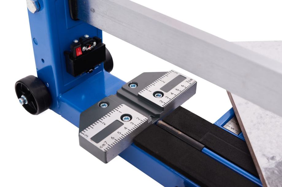 Dodatno, dva bočna nosača duljine 28 cm, obložena pjenom, osiguravaju stabilnost tijekom rezanja. Rezač je također opremljen bočnim osloncem za pozicioniranje tijekom dijagonalnog rezanja, čime se proširuje raspon primjene ovog profesionalnog alata u obradi keramičkih pločica.