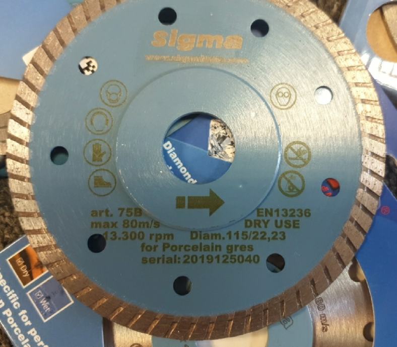 Sigma 75B – rezna ploča 115 mm za suho rezanje keramike, gres pločica