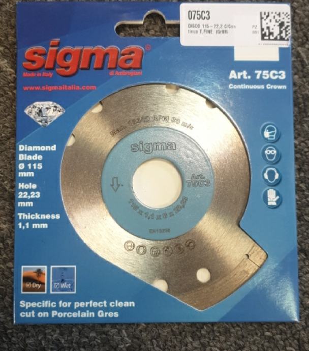 Sigma 75C3 dijamantna rezna ploča 115 mm precizno rezanje keramike