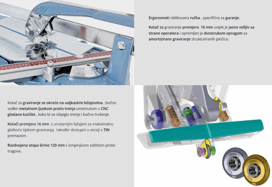 Profesionalni rezač pločica Sigma 4EN NEX dizajniran je za rezanje pločica debljine do 19 mm maximalne dužine reza 125cm, a dijagonalno rezanje pločica do dimenzija 88x88 cm..Šaljemo proizvode u cijelu Hrvatsku dostavnim službama. Izdajemo E-račun tvrtkama. Jamstvo i servis osigurani. Posjetite naš webshop www.vidam.hr