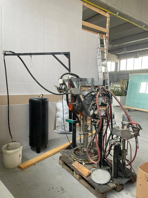 Prodaje se komplet strojeva za izradu izo stakla i to: stol za rezanje stakla(3450x2450), dvokomponentni ekstruder za kitanje izo stakla, perilica stakla, punjač molekulara, rotacioni stol. U dobrom stanju.