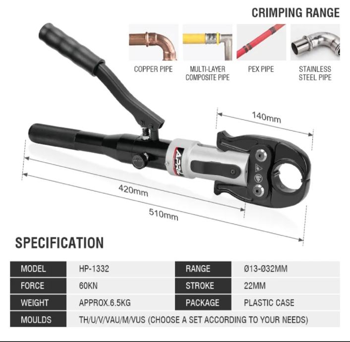 Prodajem hidraulička kliješta za alupex press fitinge TH, nastavci 16,20,25,26,32mm