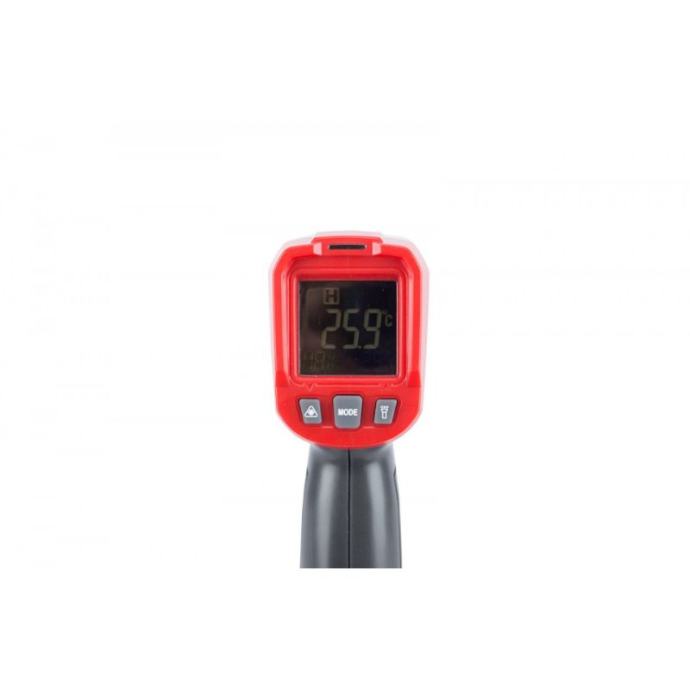 digitalni LCD zaslon u bojikrug otvora blende od 12 točaka koji označava područje mjerenjaFahrenheit, celsius promjena načina radaemisivnost se može podesiti od 0,10 do 1,00 (podesivo)alarm za abnormalnost temperature (crveno zeleni svjetlosni indikator)funkcija zadržavanja podatakafunkcija automatskog isključivanja (štedi potrošnju baterije)razumna struktura, jednostavna za rukovanjeNormalni radni uvjeti:Temperatura okoline: 10 ℃ ~ 30 ℃Temperatura skladištenja: -10 ℃ ~ 40 ℃Relativna vlažnost: ≤ 90%Napajanje: 9V baterijaTehnički podaci:veličina: 163 mm × 97 mm × 33 mm (duljina × širina × visina)težina (neto težina): 130g (bez uključene baterije)razlučivost LCD zaslona (točnost): 0,1 ℃ / ℉raspon mjerenja: -50 ℃ ~ 380 ℃ (-58 ℉ ~ 716 ℉)točnost mjerenja: ± 0,5 ℃, ± 3,0 ℃, ± 5,0 ℃vrijeme mjerenja: ≤ 0,5 sekundimjerna udaljenost: D: S = 12: 1 (omjer udaljenosti prema objektu, uvjeti mjerenja: vakuumski medij)spektralni raspon: 8 ~ 14 umautomatsko isključivanje: 1 minutaemitirani laser: kružno mjerenje sa satom od 12 točaka, emisivnost: 0,01-1,00raspon mjerenja (beskontaktno mjerenje temperature): - 50 ℃ -550 ℃]]>