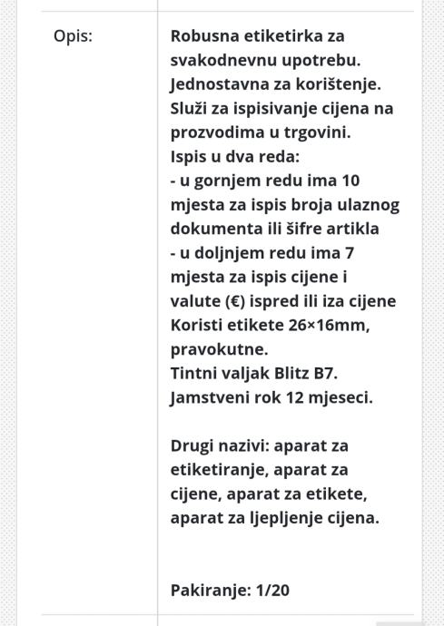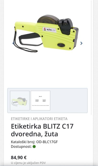 Prodajem dvoredni pistolj za etiketiranje marke Blitz C17,koristen jednu sezonu,dolazi sa novim tintnim valjkom!