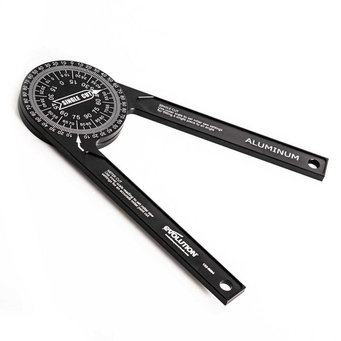 Precizni kutni rezovi: Evolutionov aluminijski kutomjer za kutnu pilu od aluminija pojednostavljuje proces pravljenja točnih kutnih rezova dopuštajući izravno mjerenje s obratka. Uklanja potrebu za izračunima podložnim pogreškama, pružajući jednostavnost i točnost u pojedinačnim, kosim i složenim rezovima, uključujući rezove krunskih kalupa.