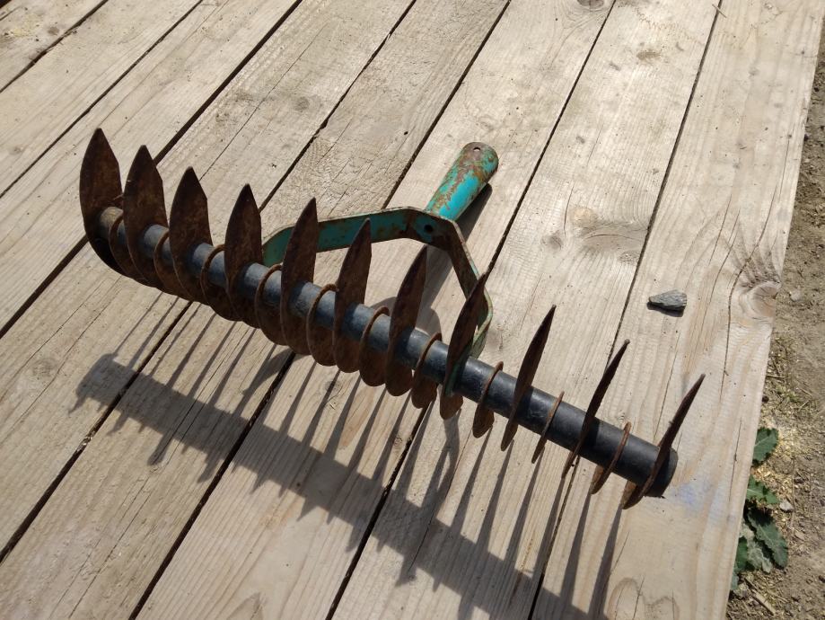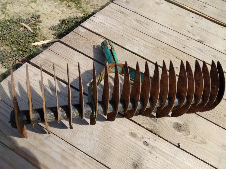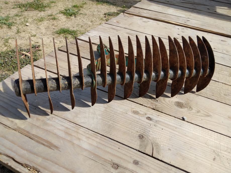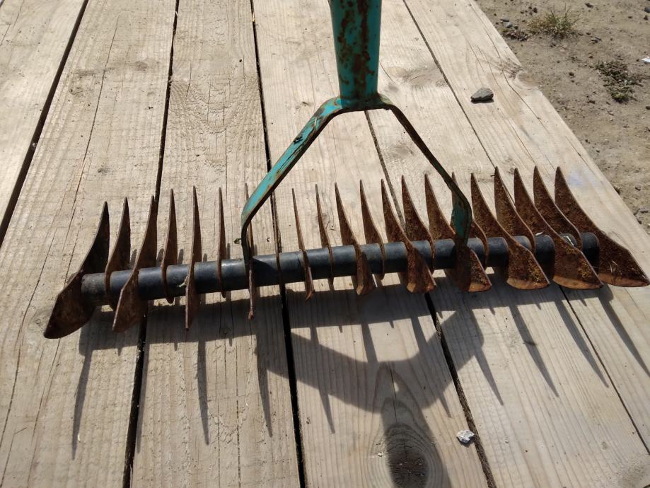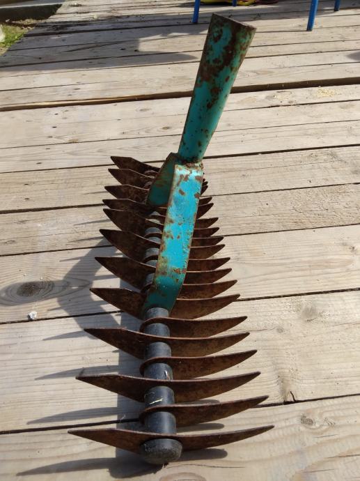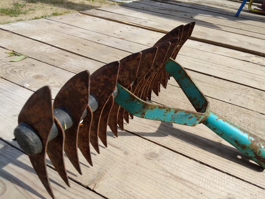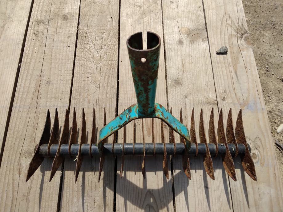 Cudne "grablje" ne znam za sta sluze. Mozda za usitnjavanje necega. Duzine su 36 cm. Svi zubi, plocice su na broju U dobrom su stanju.