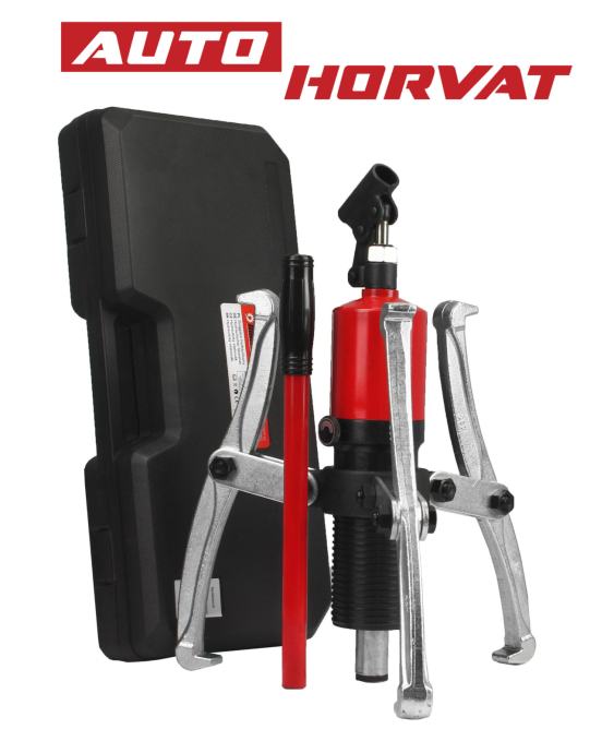 Izvlakač za ležajeve, zupčanike itd. Zahvaljujući svom hidrauličnom dizajnu, pruža značajnu vučnu silu. Za razliku od izvlakača na navoj, ne postoji sila uvijanja koja može prouzročiti klizanje alata. Jednostavnost korištenja: snaga se prenosi postupno i bez napora. Povećana sigurnost: visoka čvrstoća i sigurnosni ventil. Set uključuje kandže za montažu.