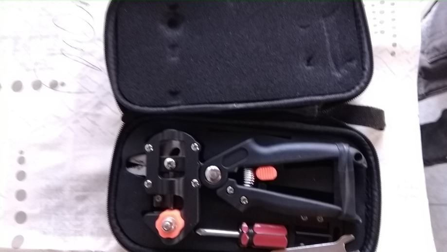 Kliješta za kalemljenje ruža i voćki sa 3 dimenzije nastavaka u prikladnoj torbici.